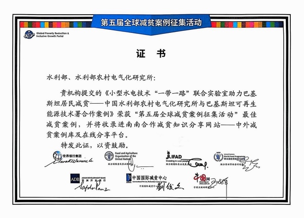 《小型水电技术“一带一路”联合实验室助力巴基斯坦居民减贫》荣获第五届全球减贫最佳案例
