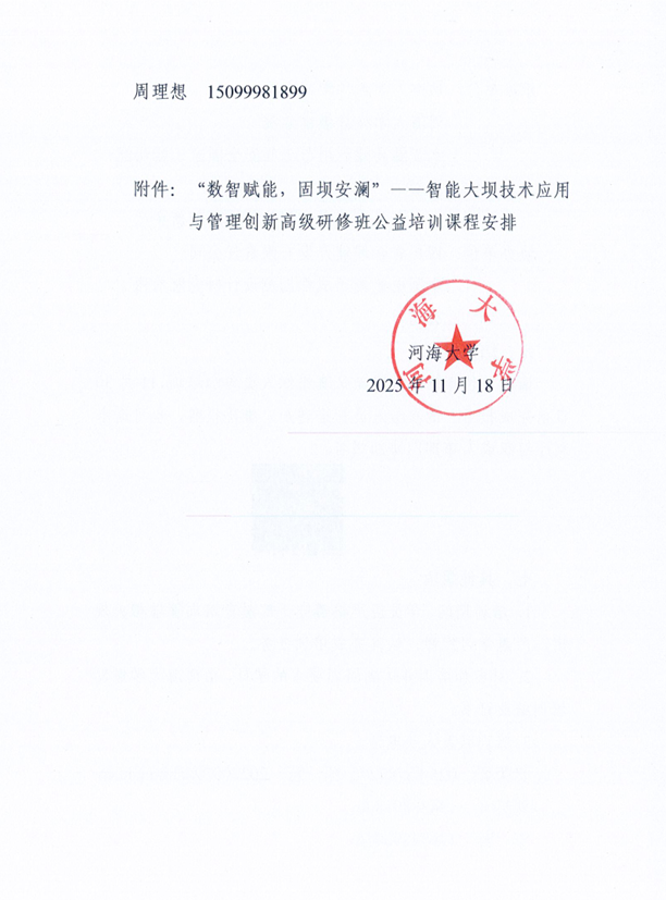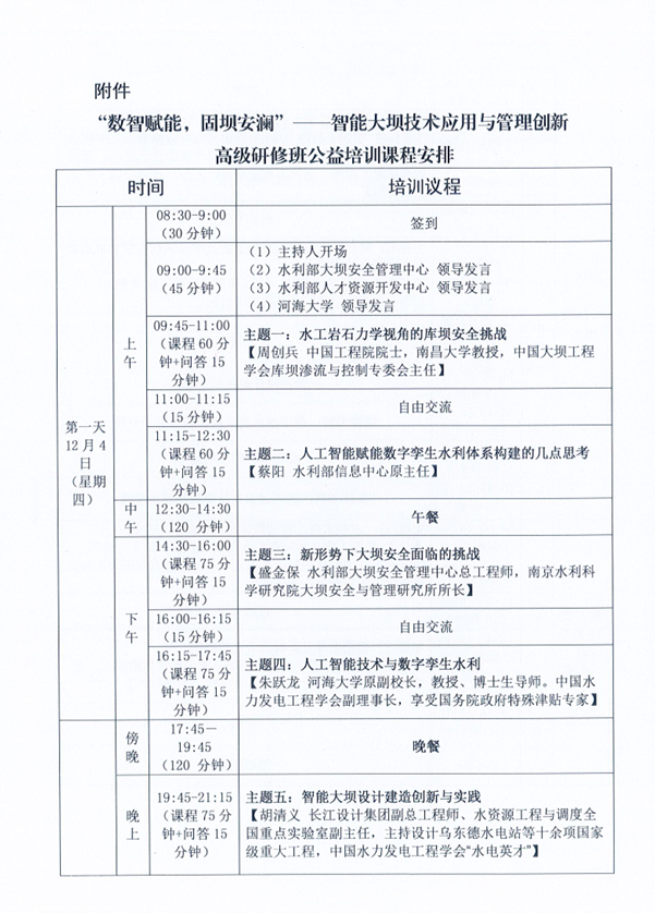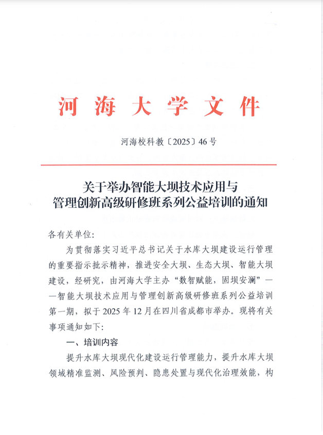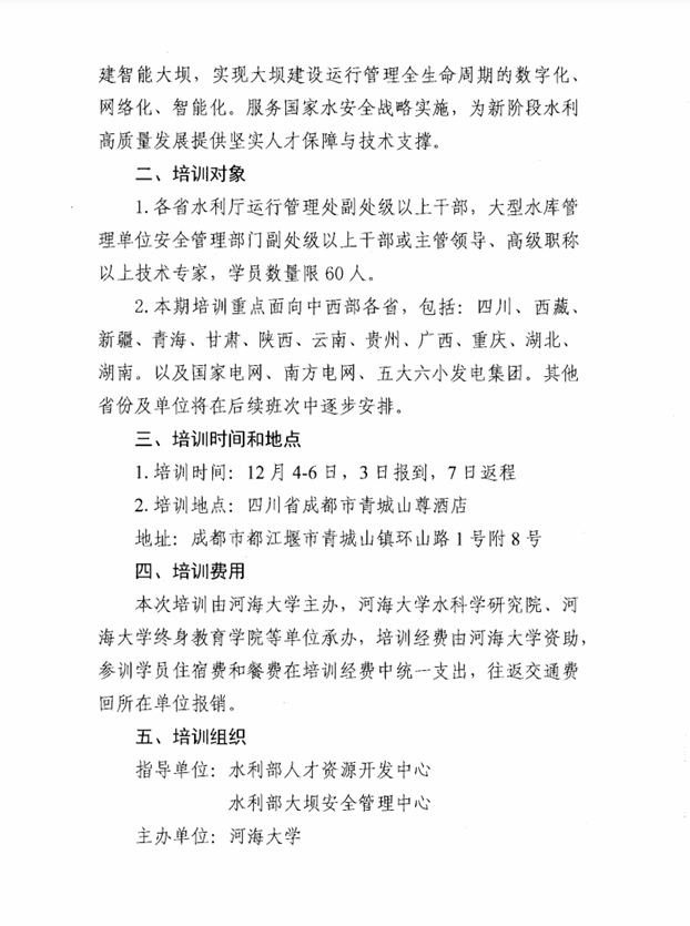 关于举办智能大坝技术应用与管理创新高级研修班系列公益培训的通知