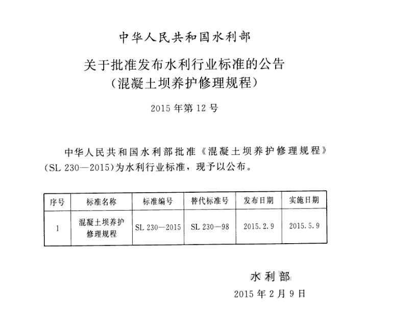 混凝土坝养护修理规程SL230-2015